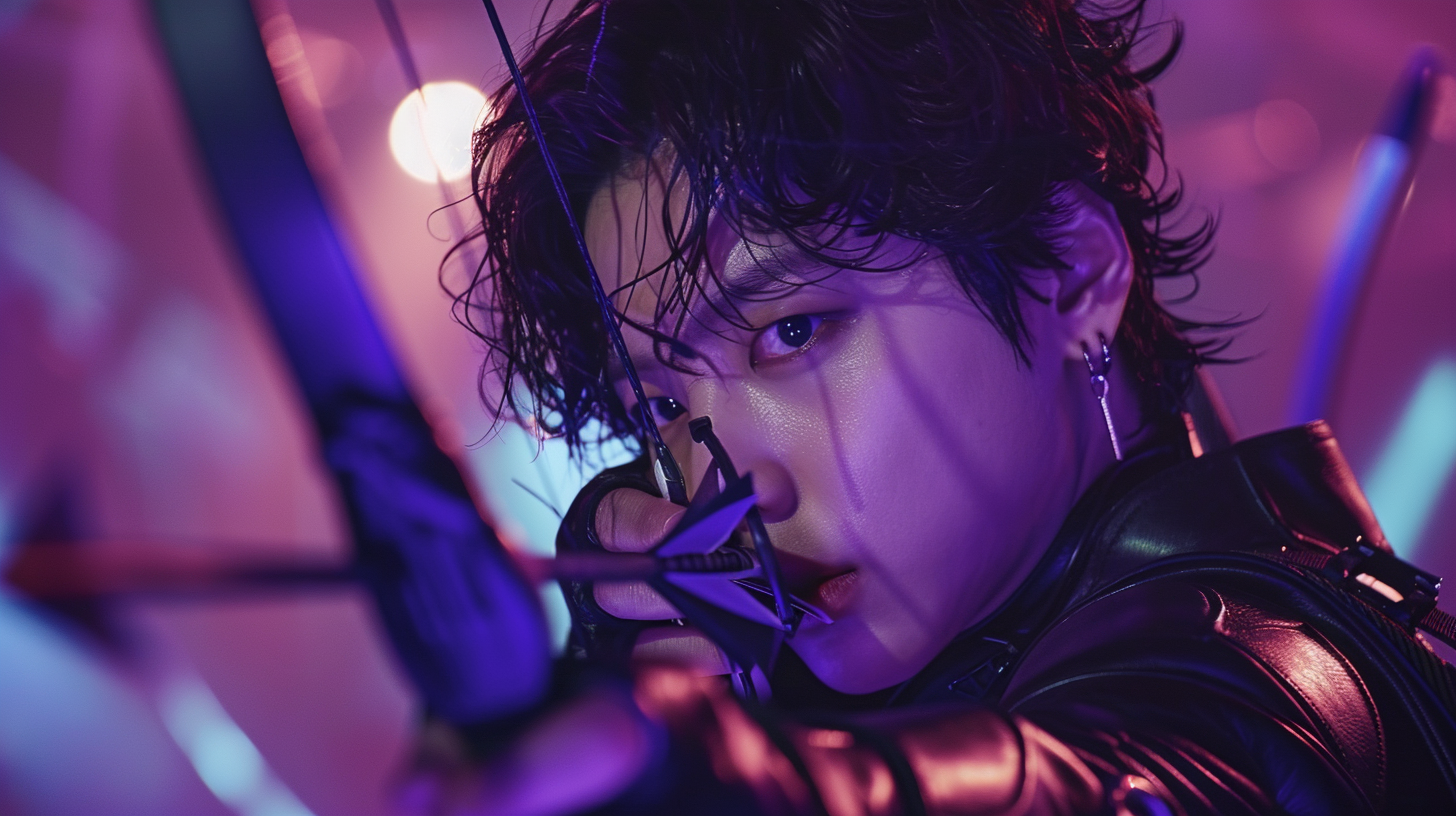 정국님이 호크아이로 변신했을 때, 그의 정확한 목표물 적중은 그의 음악적 정확성과 완벽한 조화를 이루었습니다. 언제나 목표를 정확히 겨냥하는 그의 능력은 무대 위에서든, 슈퍼히어로로서든 변함없이 놀라움을 선사했습니다.