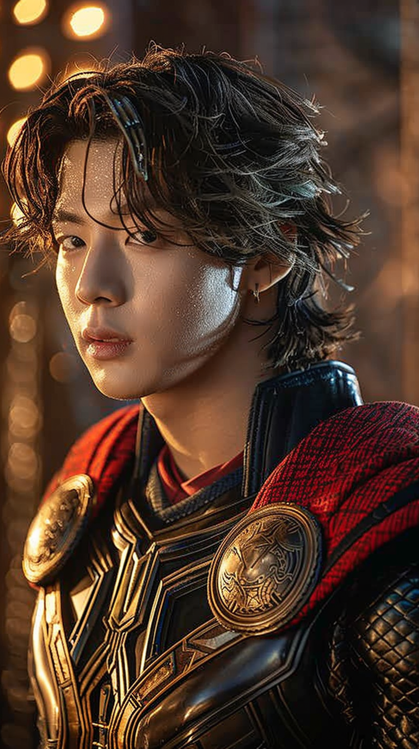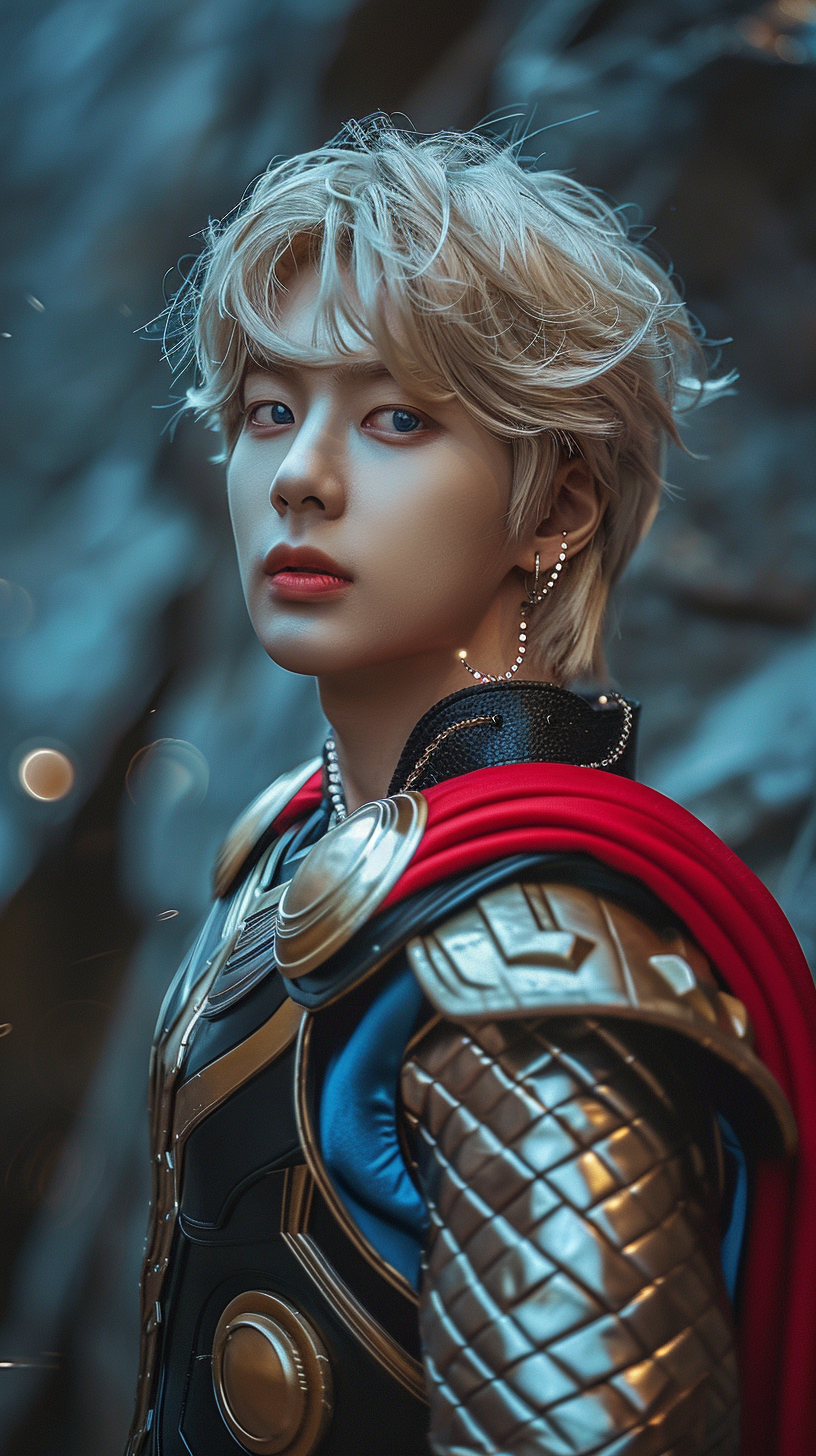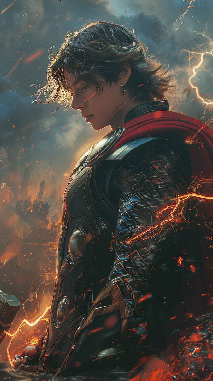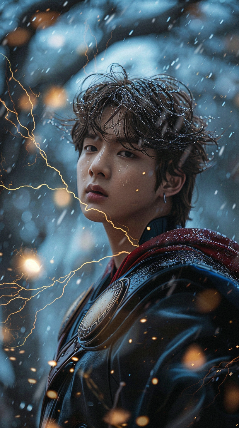 정국님이 토르가 되었을 때, 그의 손에 들린 묠니르는 그의 강력한 음악적 에너지와 결합되었습니다. 번개와 폭풍을 다루는 그의 능력은 무대 위에서 그의 열정적인 퍼포먼스와 어우러져 관객들에게 잊을 수 없는 경험을 선사했습니다.