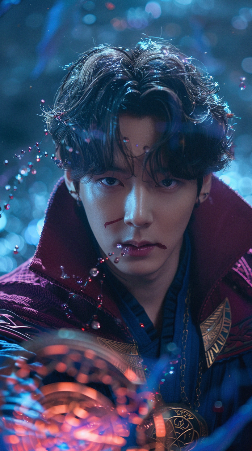 시공간을 초월하는 닥터 스트레인지의 모습으로 변신한 정국님은, 그의 음악과 무대 퍼포먼스로 팬들을 마법 같은 세계로 안내했습니다. 그의 손끝에서 펼쳐지는 마법은 관객들을 새로운 차원의 여행으로 이끌었습니다.