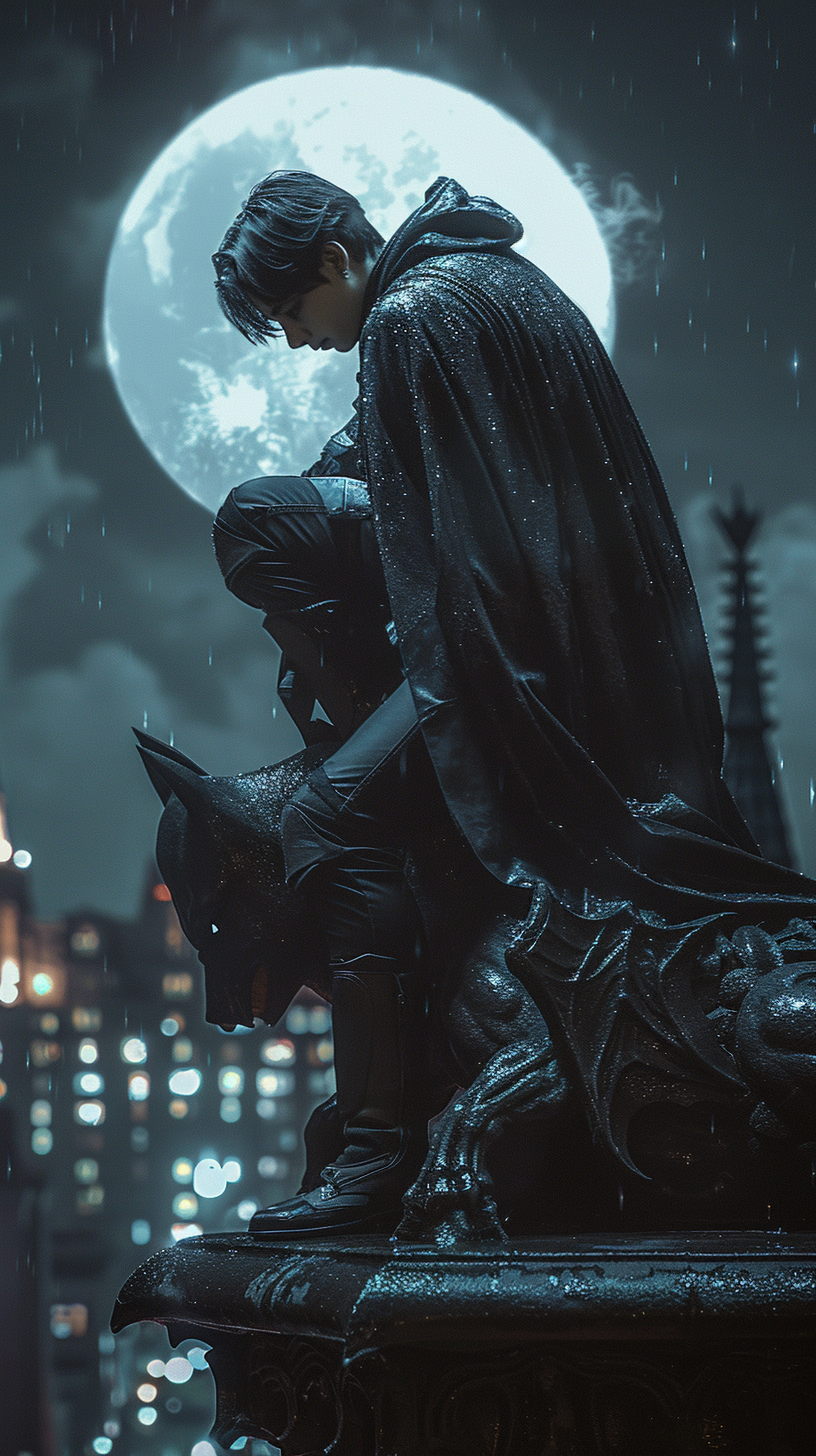 어둠 속에서도 빛나는 정국님, 그가 배트맨이 되었을 때, 그의 고독하면서도 강한 정의감이 돋보였습니다. 고담 시티를 지키는 침묵의 수호자로서, 정국은 그의 음악적 재능과 무대 매너를 이용하여 악과 싸우며 정의를 실현했습니다.